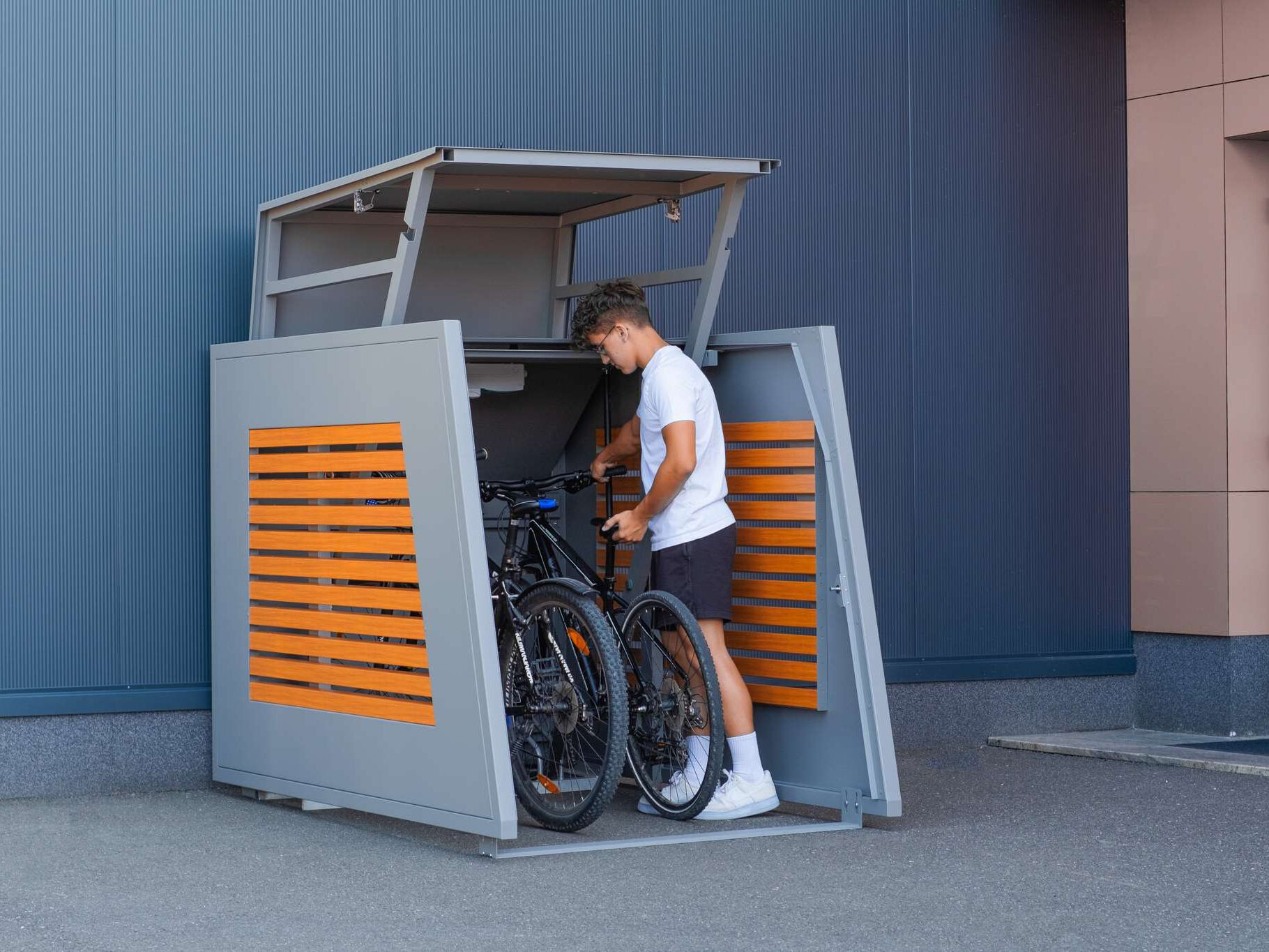 The advantage of the StyleOUT® BikeBOX bike shed lies in its compact external dimensions, making it suitable for placement in areas with limited space. This makes it convenient and efficient for storing bikes in urban environments, where space is often scarce. Additionally, the BikeBOX is modular, allowing for the placement of multiple bike sheds in sequence, providing even more space for a larger number of bikes.