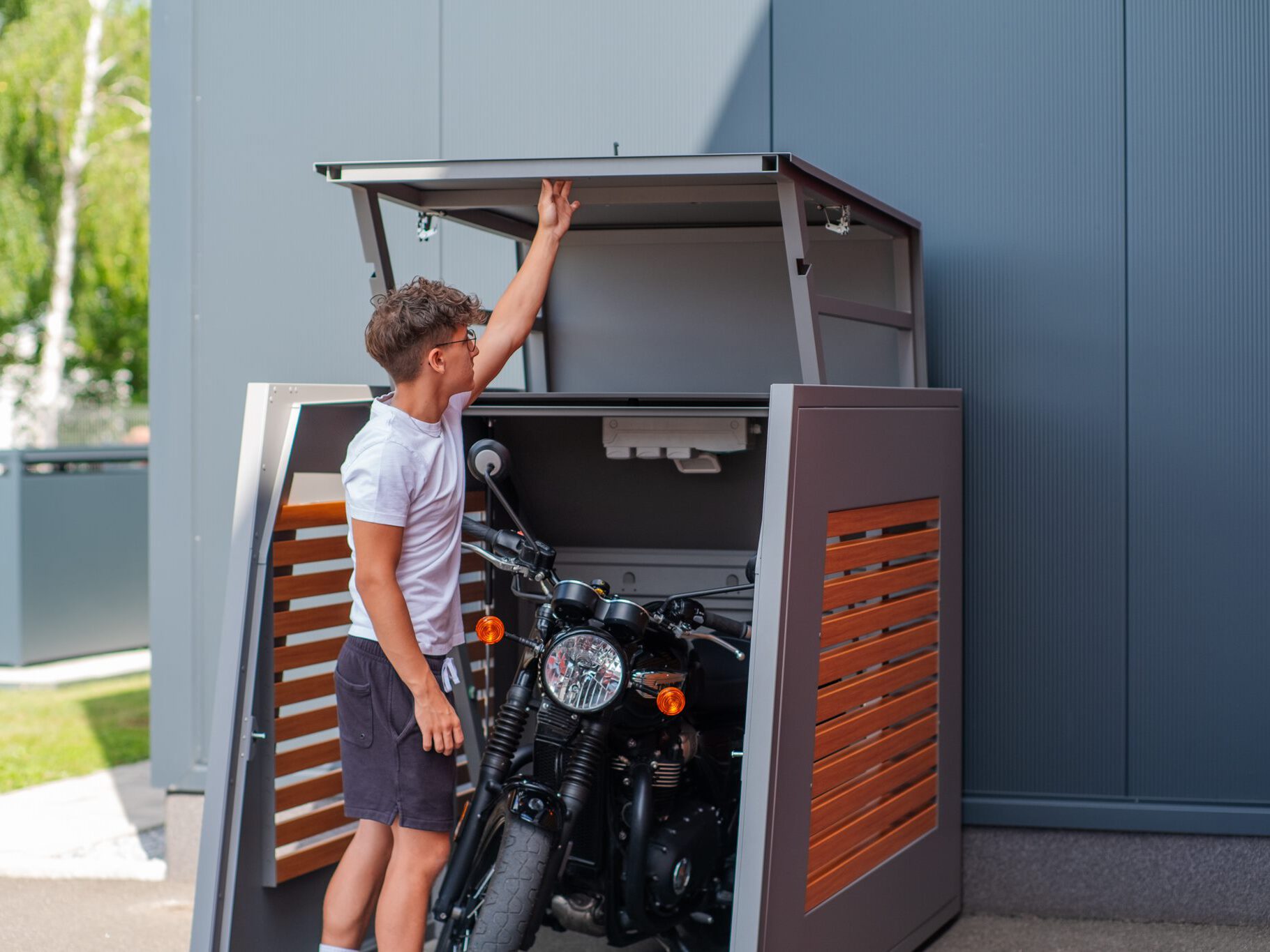 Kolesarnica StyleOUT® BikeBOX je zasnovana tako, da lahko vanjo shranite tako kolesa kot majhna motorna kolesa, zato je vsestransko uporabna za različne vrste vozil.