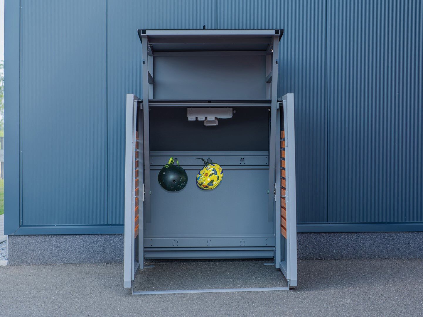 StyleOUT® BikeBOX je namenjen shranjevanju dveh koles ali manjšega motornega kolesa. Zaradi možnosti dodatka električnih vtičnic je kolesarnica primerna tudi za električna kolesa.