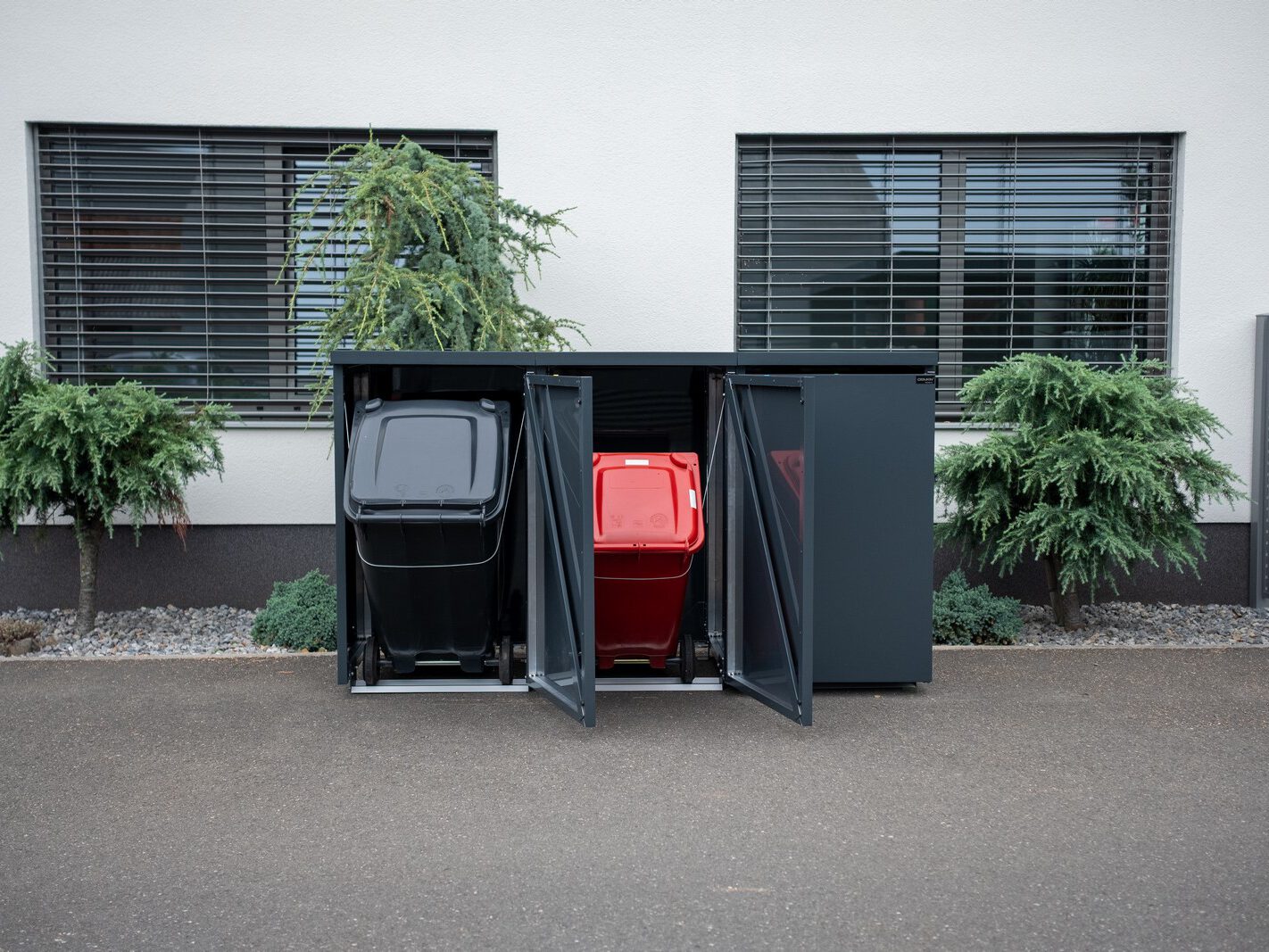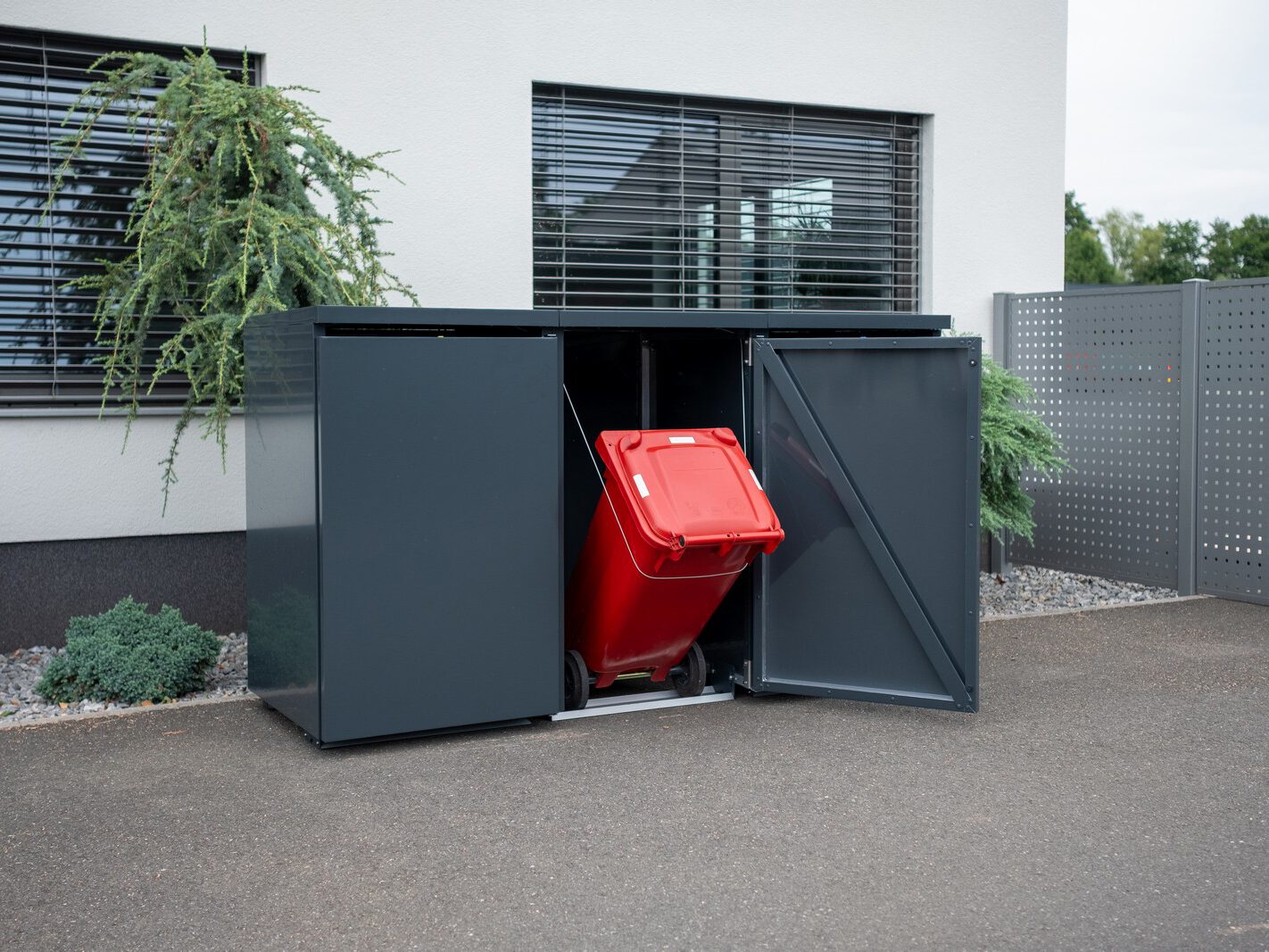 Vsaka enota je namenjena enemu zabojniku. Modularna zasnova omogoča, da enote enostavno sestavite v enojni, dvojni, trojni ali večji smetarnik – glede na vaše potrebe.